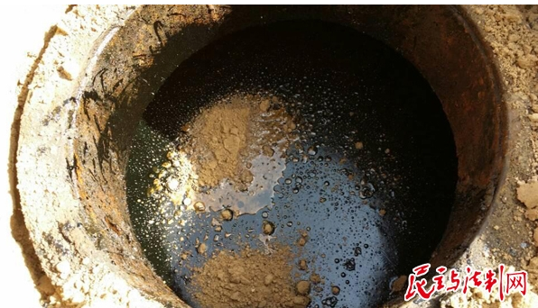 沿著公路往橫山方向前行,在一處標有王疙堵農業生態旅游渡假村指示牌的地方,東西各有一處黑油窩點。一處在路東沿著王疙堵渡假村指示牌方向,行至渡假村彩門,沿左側水泥路不到百米處,數十畝山梁被挖成平地,地上散落著一些裝原油的塑料袋和分離出來被污水污染過的土溝。經過記者仔細觀察,發現地下有兩處松軟的土層,扒開土層映入眼簾的是兩個油罐罐口,罐里是黑乎乎的原油。