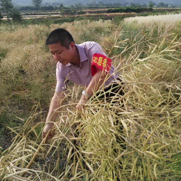 這天一大早,我就趕到了漁池小學,經過詢問得知,劉昉書記六點鐘己趕到西村組幫困難戶收獲油菜去了。當我沿著曲曲彎彎的田間羊腸小道趕到西村組溝坡的菜子地里時,他上身穿一件短袖、腳上穿的黃膠鞋,正在和老鄉腰子蒙蒙上使勁地干活呢,一臉汗珠一身土,讓人簡直不敢相信這就是區司法局那個文文靜靜的宣傳股長。見我趕到地里來了,他一邊打招乎一邊干活,說是九點就得幫忙把菜子割完,還要主持學校的慶“六一”兒童節活動呢。