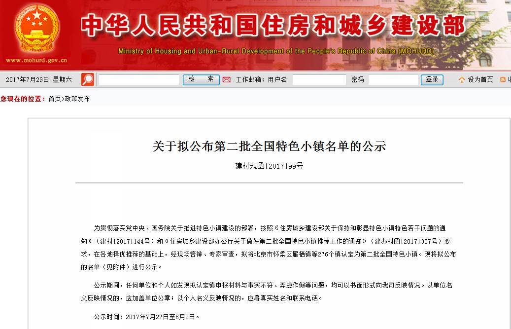 《關(guān)于擬公布第二批全國(guó)特色小鎮(zhèn)名單的公示》