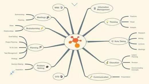 思維導圖的本質邏輯是分類,導圖新子集分類的建立過程也像大腦的記憶過程一樣,不斷以一個個點為中心進行發(fā)散,以至無窮。
