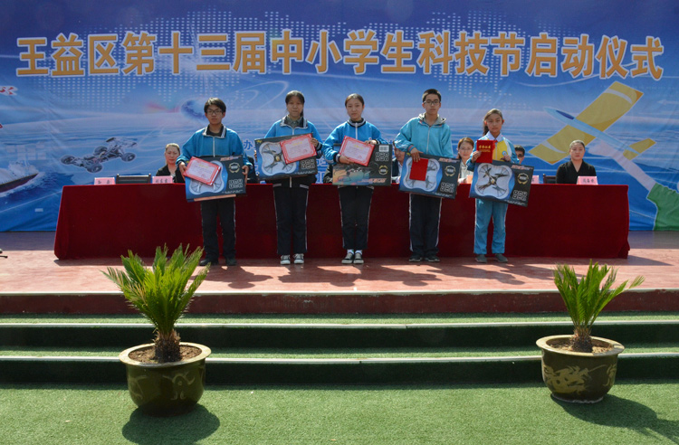 啟動儀式上,對第十二屆中小學生科技節活動中的優秀科技作品和優秀組織單位進行了表彰,安排了第十三屆中小學生科技節,展示了學生優秀科技作品,組織舉行了小學生科技競賽。科技節活動得到了陜西國防工業職業技術學院和王益區科協的鼎力支持,陜西國防工業職業技術學院電子工程學院為啟動儀式帶來了精彩的航模飛行、無人機、機器人演示,讓與會人員對科技創新表現出了極大的興趣,現場掌聲和歡呼聲連綿不斷。