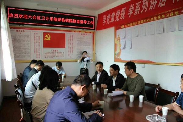5月5日上午,南京市六合區(qū)衛(wèi)計局黨工委書記孫軍率領六合區(qū)中醫(yī)院副院長、六合區(qū)衛(wèi)計局醫(yī)政藥事科長、六合區(qū)人民醫(yī)院、中醫(yī)院相關科室主任,相關社區(qū)、衛(wèi)生院負責人,在山陽縣衛(wèi)計局紀委書記徐文喜、醫(yī)政股長王忠誠、科員鄭娉娉陪同下,深入山陽縣漫川關鎮(zhèn)中心衛(wèi)生院考察指導對接六合--山陽醫(yī)療扶貧協作工作,漫川關鎮(zhèn)中心衛(wèi)生院支部書記、院長姚廣寶同志對六合區(qū)衛(wèi)計系統專家們的到來表示熱烈歡迎。