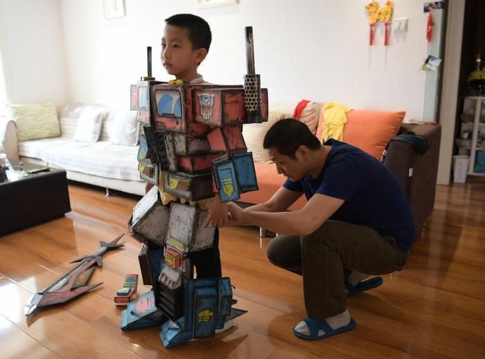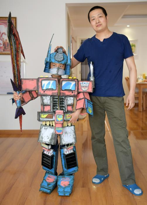 別人家爸爸!西安80后老爸為兒子純手工打造"變形金剛" 盔甲