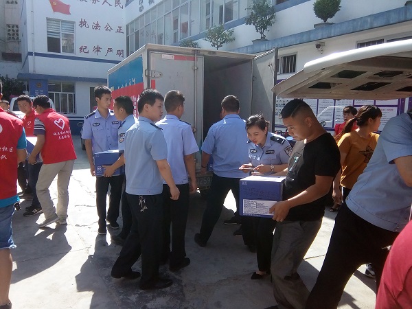 6與5日一早,志愿者們載著200件礦泉水和30箱方便面,先后來到漢陰縣公安消防大隊、交警大隊、城關派出所一線執勤點,將其贈送給執勤干警。社區黨支部書記鄧賢莉表示:每年高考期間,為維護道路交通秩序,保障學子們有一個良好的考試環境,烈日下都能看見你們的身影,你們就是馬路上最靚麗的風景線,感謝你們辛勤付出,你們辛苦了!