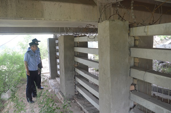 雨季到來,為了不因為降雨產生的自然災害,影響鐵路安全運行,黃陵站派出所黨支部組織全所民警、輔警對轄區線路開展了徒步隱患排查,由所長劉萬、教導員高路帶隊,冒著高溫酷暑以每10公里為一個區間進行徒步排查,對排查出的線路隱患,能及時整改的兩位領導帶領民警及時予以了整改,不能整改的黃陵站派出所及時向責任單位下發了《鐵路安全隱患整改通知書》,建立了線路隱患問題庫,將問題輸入西安鐵路公安局警務綜合平臺,督促工務單位及時整改,整改一起銷號一起,有效的確保了轄區甘鐘鐵路線路安全。