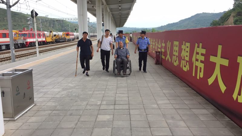 本網訊(通訊員:孟亮)2018年8月12日,延安市黃陵縣阿黨鎮84歲的劉秉義老人欲購買黃陵南站到河北石家莊的K214火車車票看病,因無法工作人員提供身份證號在黃陵南站售票廳急的淚流滿面,在此執勤的延安鐵路公安處黃陵站派出所民警楊松關及時趕到,為老人及時辦理了臨時乘車身份證明并開辟了綠色通道將老人及時送上火車,受到周圍群眾的一致稱贊。