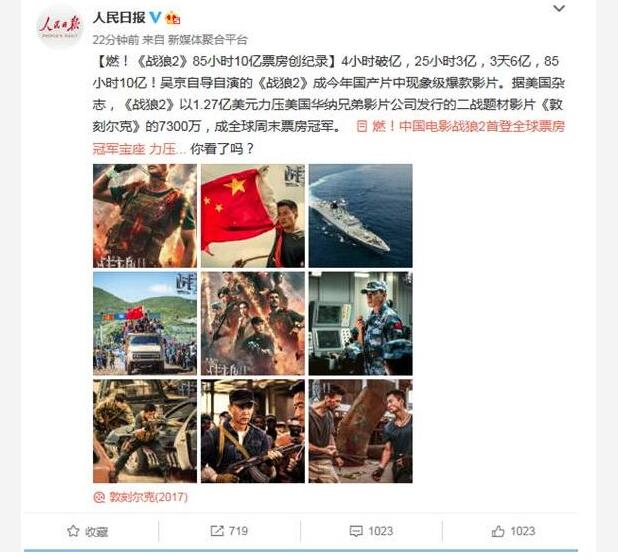 最近幾天,吳京的《戰狼》2成績實在喜人,上映了四天票房就高達9.36億,直逼當年的《美人魚》,還連續兩天單日票房破3億,沒過首周末就已經完成了保底票房,簡直讓人驚嘆不已,很多吃瓜群眾表示一開始就抱著試試看的心態買票的,沒想到電影意外的好看,還有人感動的說:“這是看了這么多年電影,是第一次遇到全體觀眾集體自發鼓掌的。“