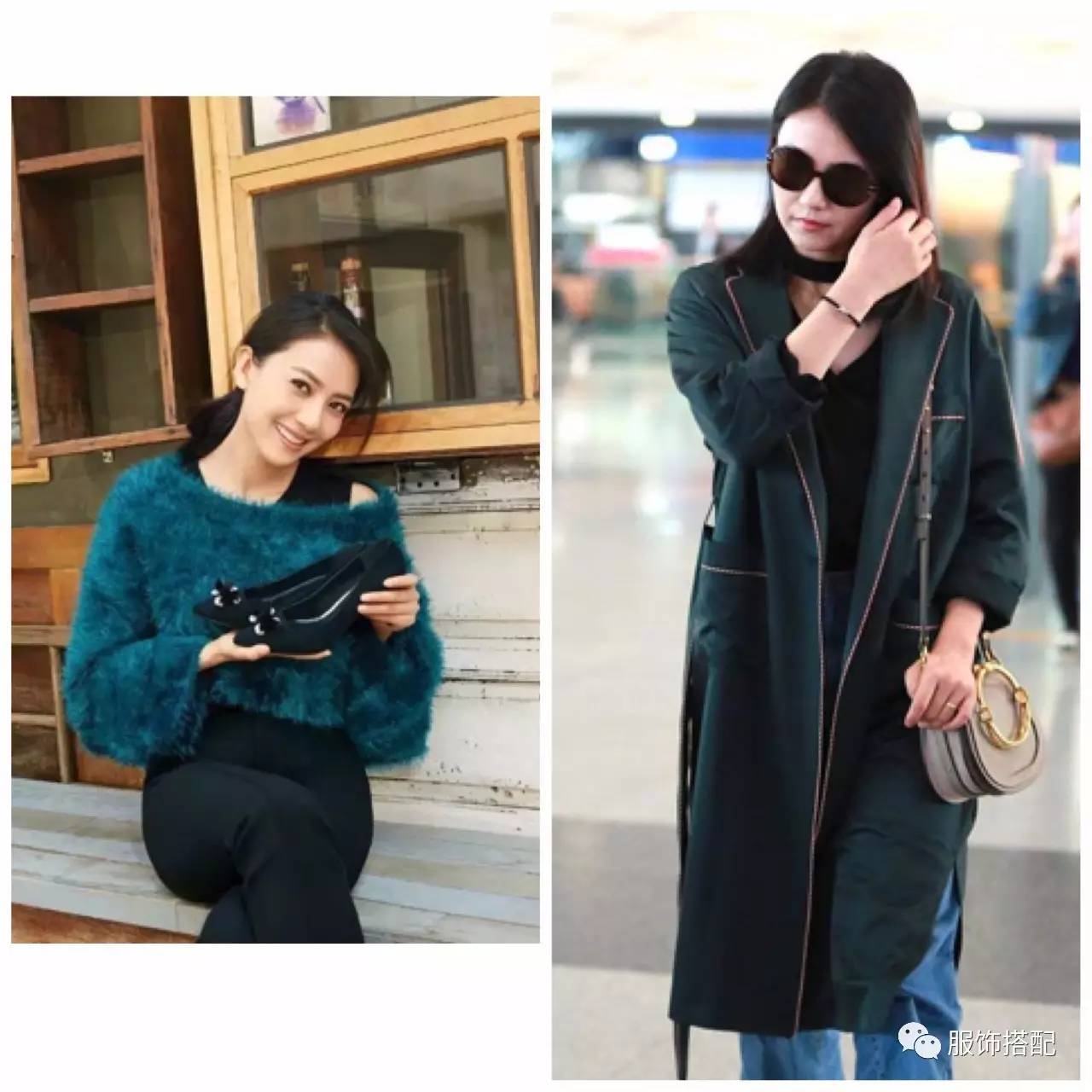 高圓圓的衣櫥就有不少自帶高級感的暗云杉綠色單品。