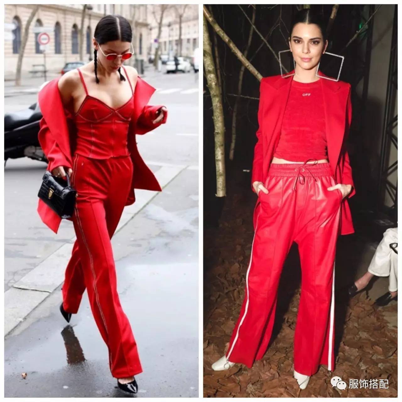 如果你本身就鐘意比較高調前衛的穿衣風格,不妨像Kendall和Bella這對時髦閨蜜一樣挑戰石榴紅同色系的褲裝搭配,拉風時髦且帥氣爆棚,氣場也瞬間開了掛。