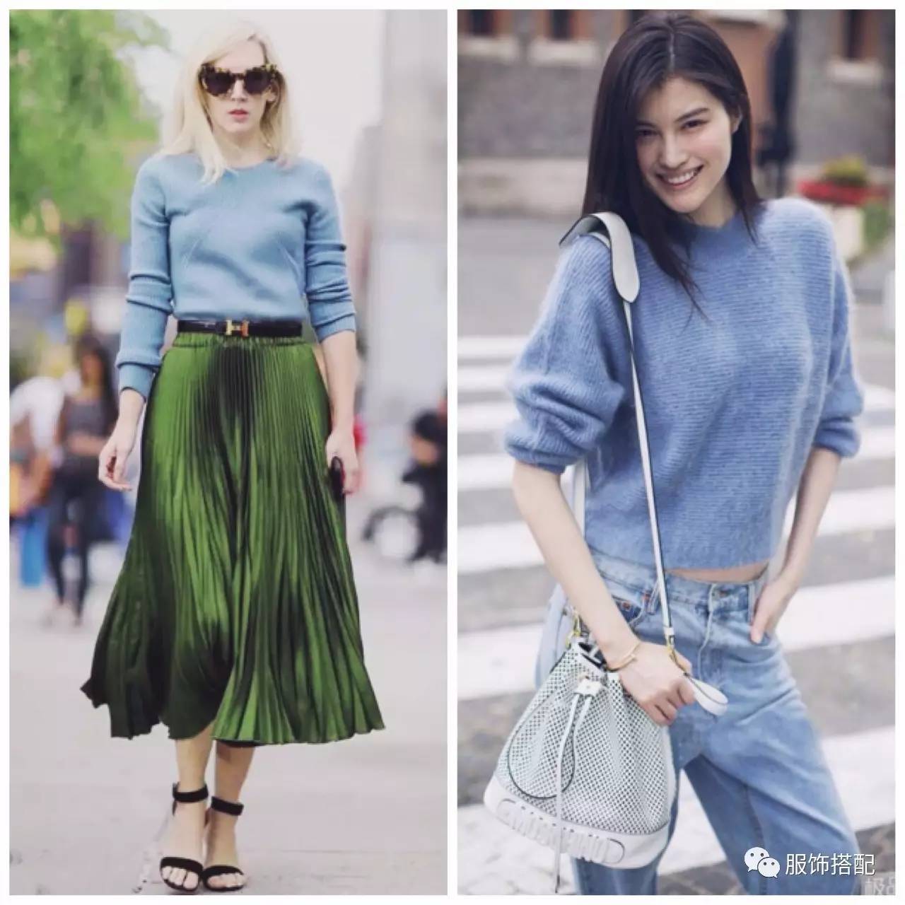 船塢藍毛衣搭配百褶裙,讓你在冬天也可以美得很輕盈。而船塢藍毛衣+牛仔褲更是很好借鑒的同色系搭配套路,同屬于藍色系的兩種單品在視覺上既有和諧統一的整體感,又能利用材質區分來凸顯造型的層次感。