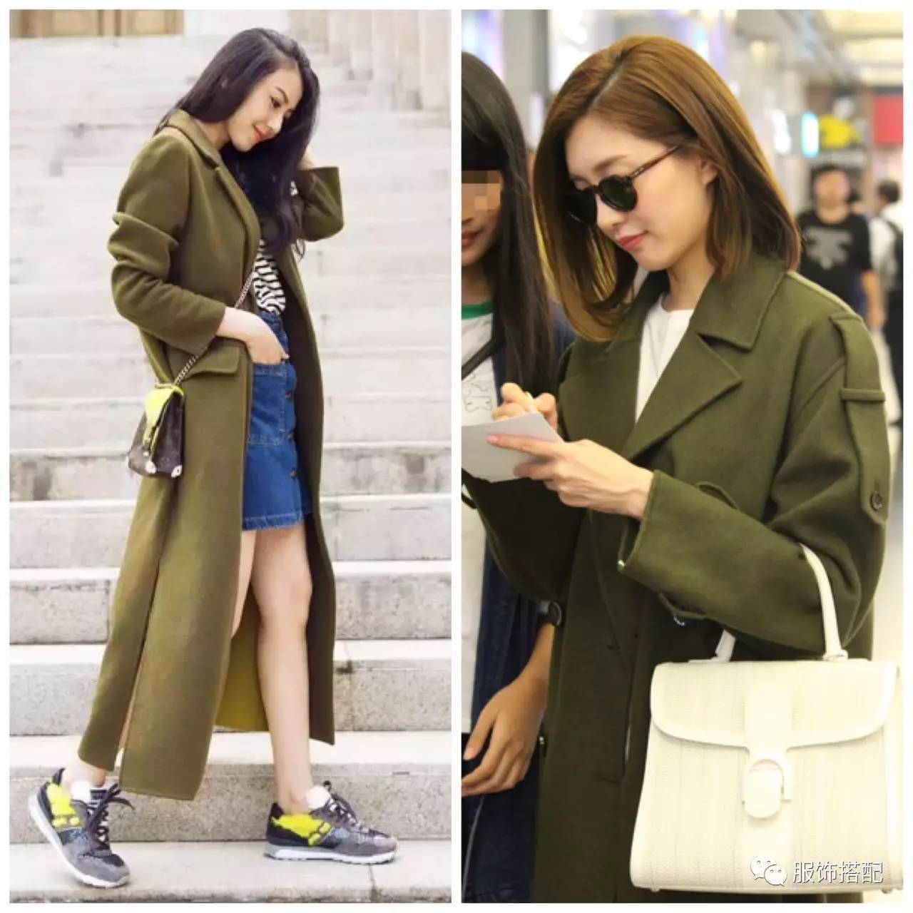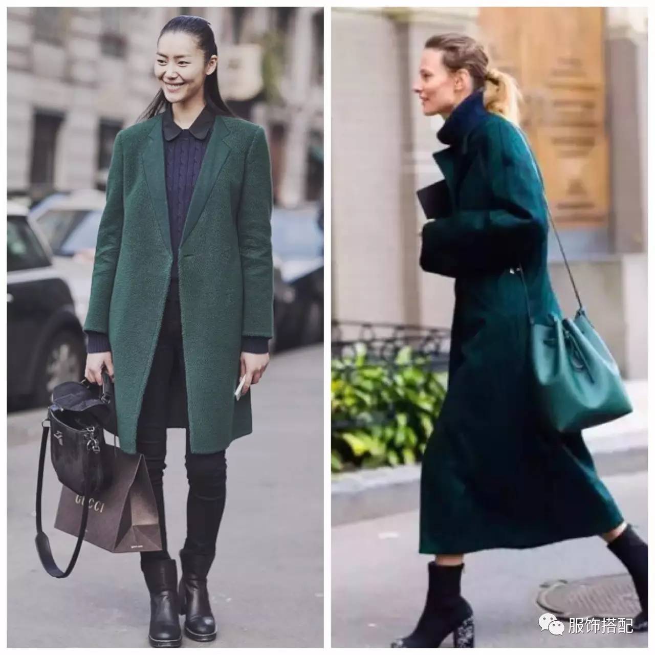 暗云杉綠大衣是搭姐自己的心頭好,親測非常顯白襯膚色。像大表姐劉雯一樣內搭素色毛衣+黑色小腳褲就很好看了。