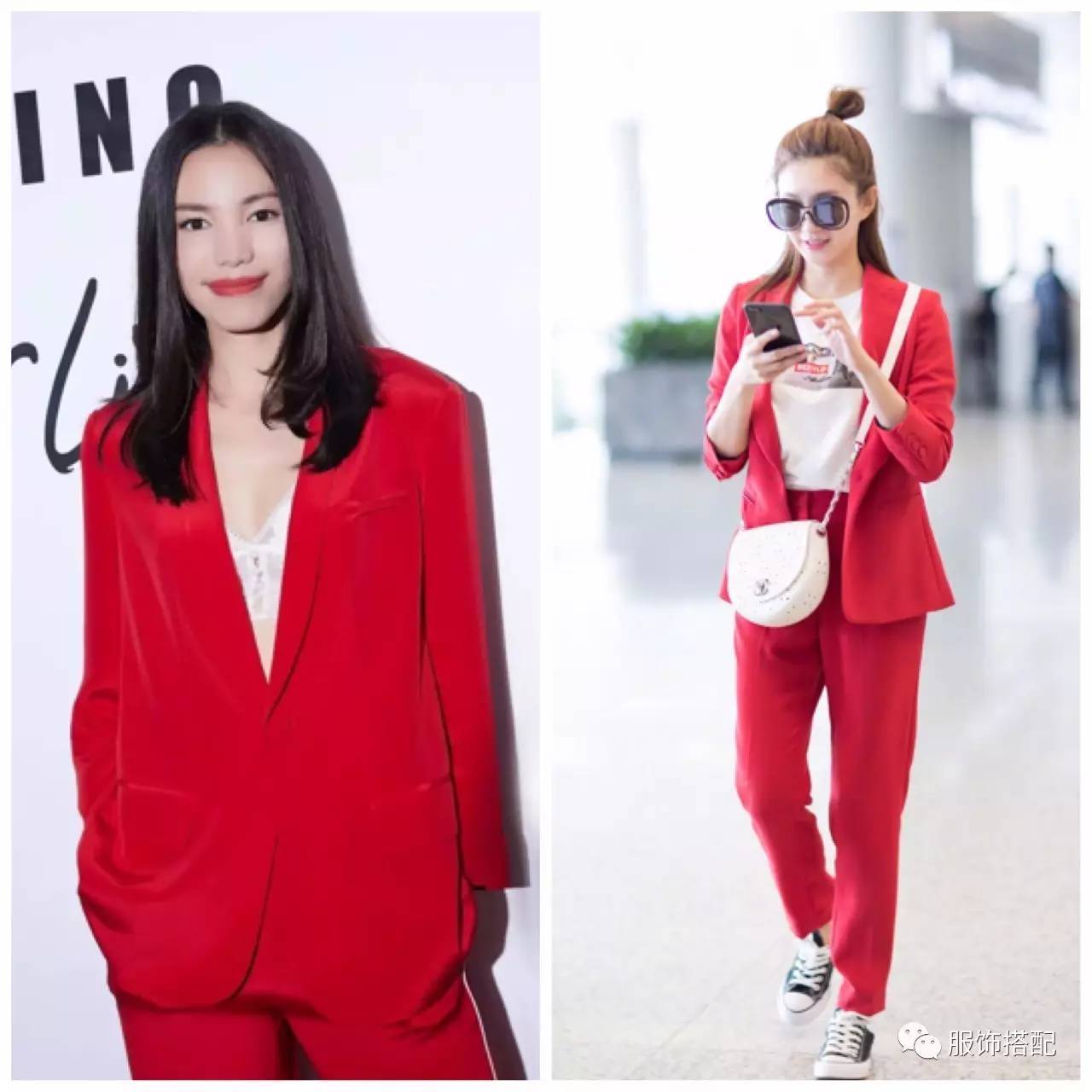 石榴紅西服套裝也是今季時髦星人的凹造型利器。像江疏影就用石榴紅西服套裝+白色印花tee來混搭黑色帆布鞋,黑色帆布鞋的加入讓整身look減齡許多,休閑時髦的同時還帶有幾分文藝腔調。