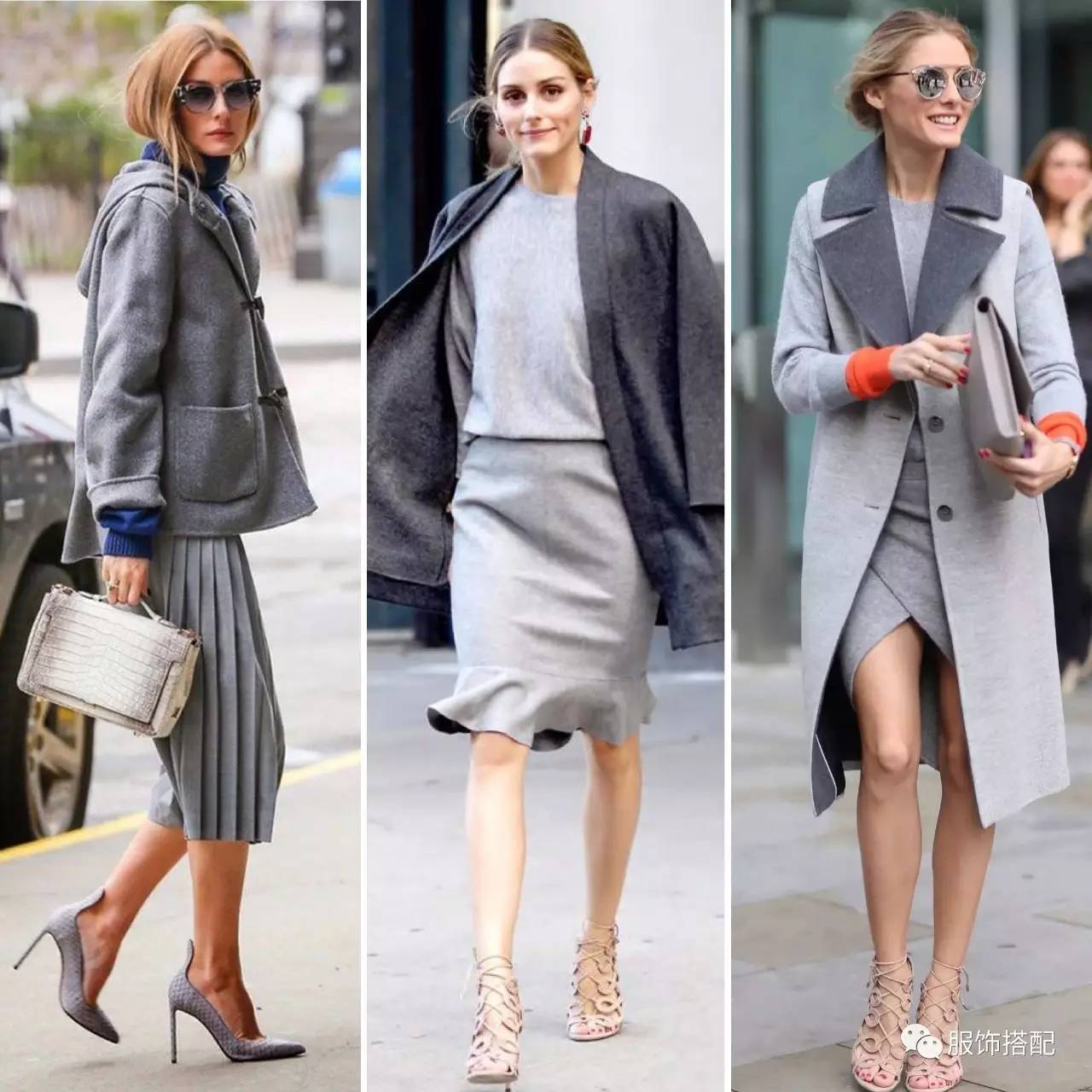 萬能百搭的灰色有多好穿這里搭姐也無需再過多贅述,畢竟秋冬季無論是哪種單品選擇灰色幾乎都是非常安全穩妥的。你大可以像時尚名媛奧利維亞-巴勒莫一樣,直接用灰色系的單品來打造同色系搭配。