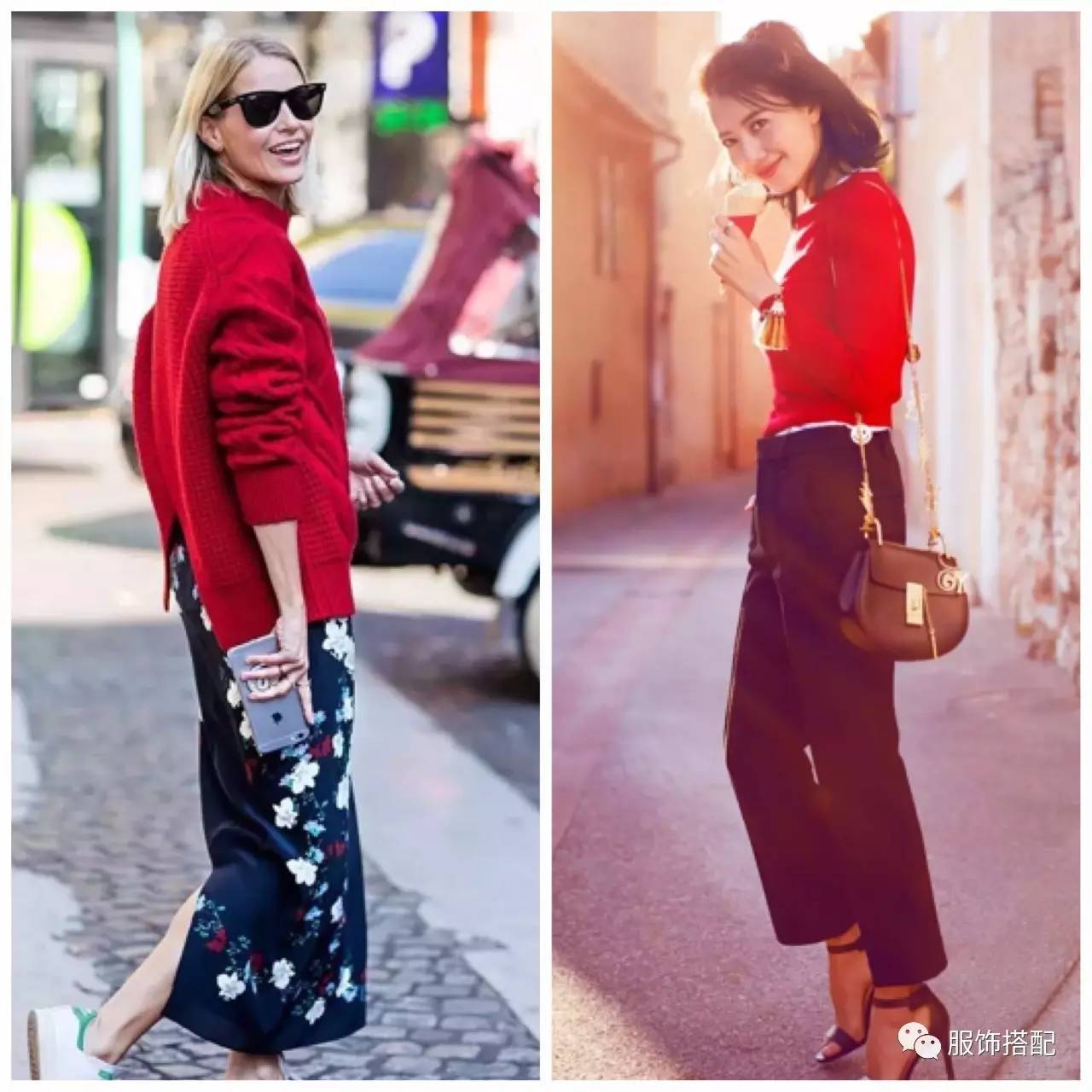 如果覺得這種比較靚麗的紅色太過高調張揚,你其實只需像高圓圓一樣入手一件石榴紅針織衫即可,簡單搭配就可以很出彩。